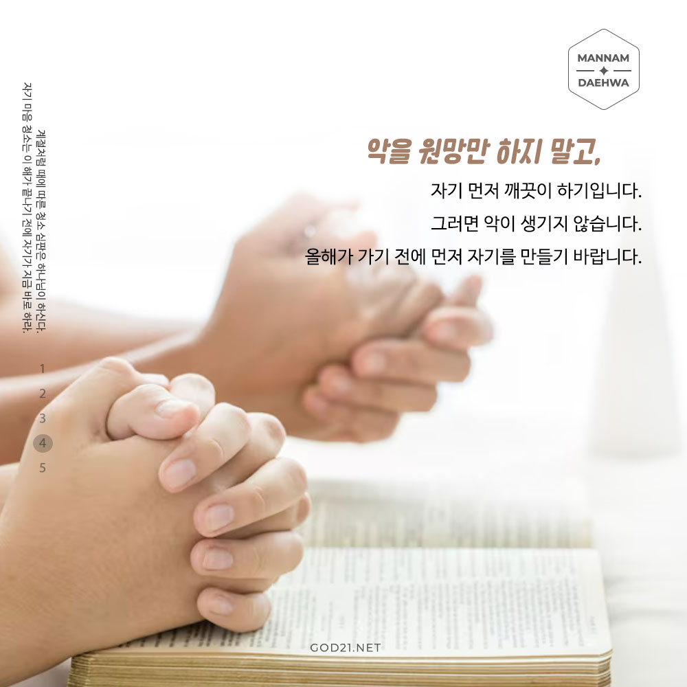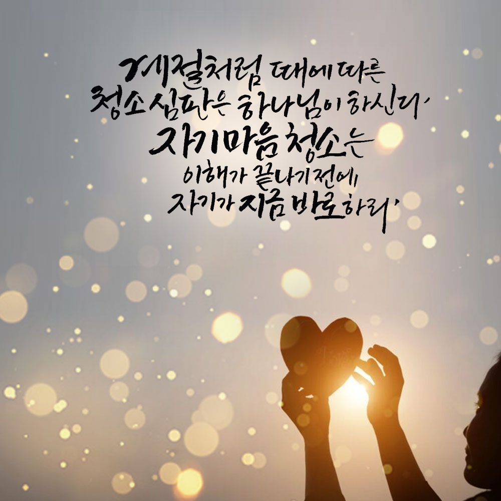계절처럼 때에 따른 청소 심판은 하나님이 하신다. 자기 마음 청소는 이 해가 끝나기 전에 자기가 지금 바로 하라.