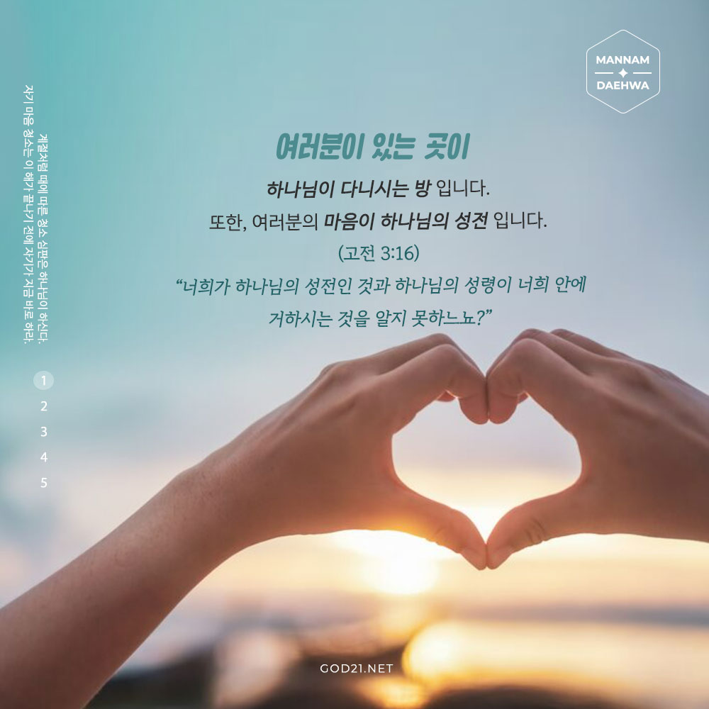 (고전 3:16) “너희가 하나님의 성전인 것과 하나님의 성령이 너희 안에 거하시는 것을 알지 못하느뇨?”