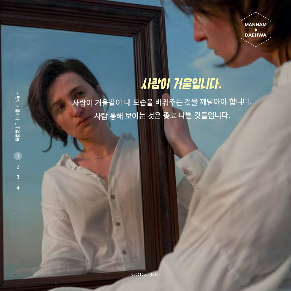 사람이 거울같이 내 모습을 비춰주는 것을 깨달아야 합니다.