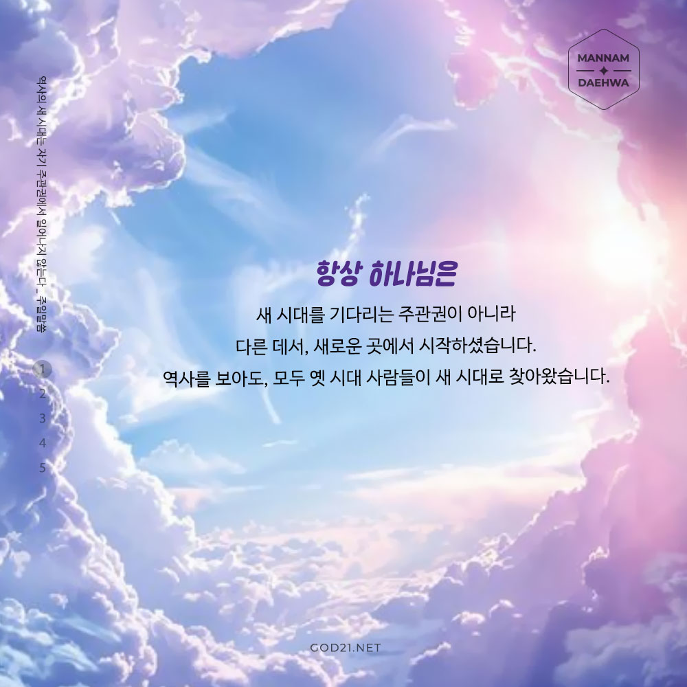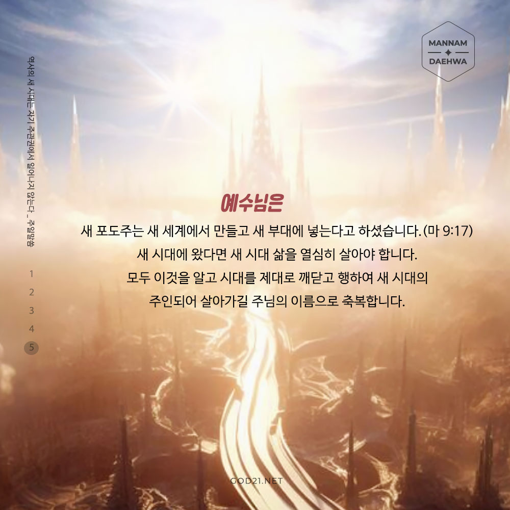 모두 이것을 알고 시대를 제대로 깨닫고 행하여 새 시대의 주인되어 살아가길 주님의 이름으로 축복합니다.