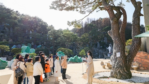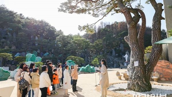 2025년 선교 행사 ‘보여줄게 이것이 섭리다’ 성황리 마무리지난달 29일 월명동 자연성전에서 열린 ‘보여줄게 이것이 섭리다’ 행사에 찾아온 방문객들이 성전 내 소나무와 형상석 작품들의 설명...